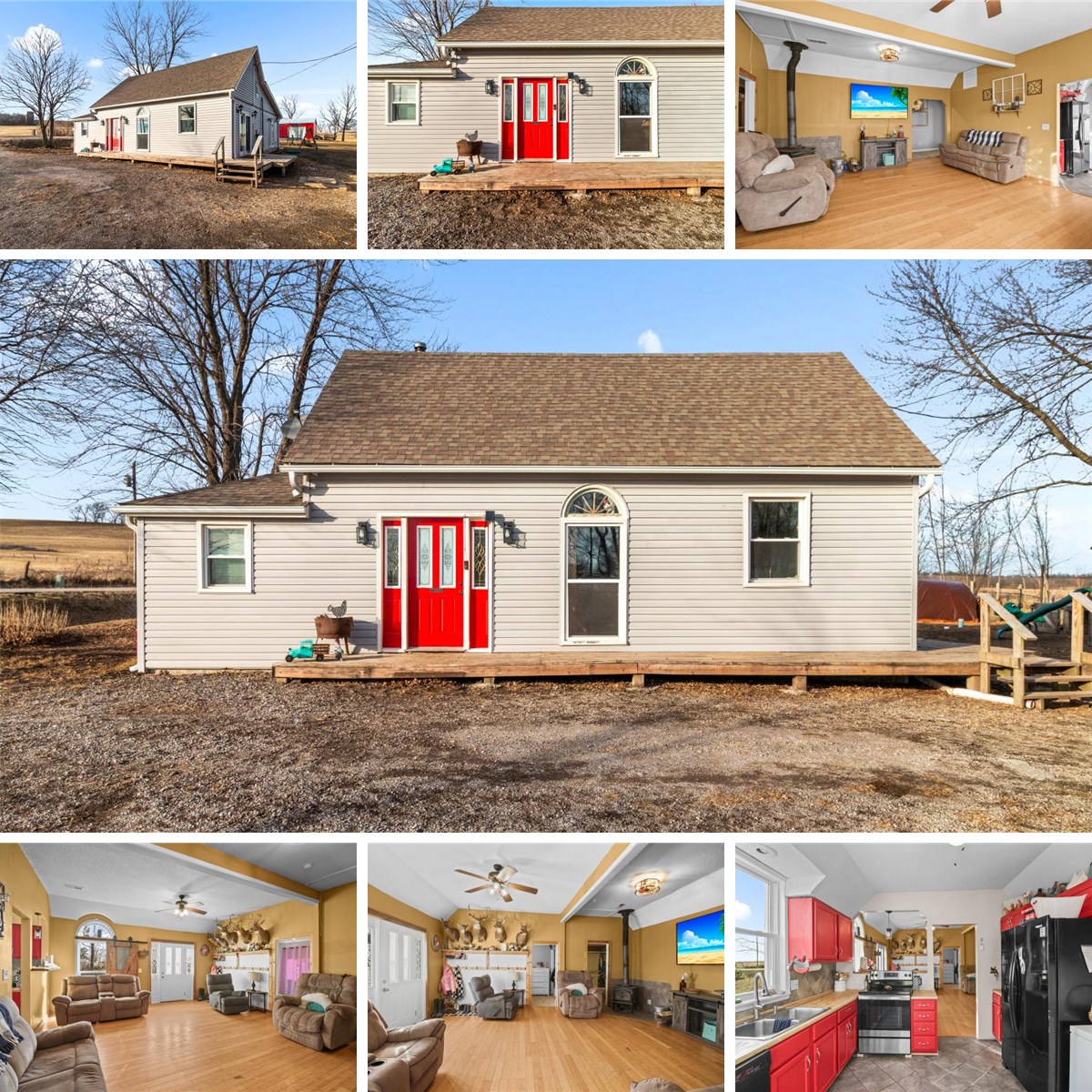 Experience the ultimate country lifestyle on nearly 7 pristine, level acres of lush Missouri land! This beautifully updated ranch home offers the perfect blend of modern comfort and rustic charm, situated on a quiet paved road with breathtaking views and mature trees. Every inch of this residence was thoughtfully remodeled in 2017, featuring a durable new roof, stylish vinyl siding, high-efficiency insulation, and updated gutters. Step inside to find gorgeous, eco-friendly bamboo flooring and plush carpet that guide you through an open-concept living space flooded with natural light from newer windows and doors. The heart of the home shines with updated lighting, a cozy wood-burning stove for those crisp country evenings, and a spacious kitchen equipped with a convenient island and pantry. Retreat to the primary suite, where vaulted ceilings and a luxurious whirlpool tub create a spa-like sanctuary. Modern living is made easy with a newer furnace, air conditioning, and ductwork, ensuring year-round efficiency. Outside, the expansive 6.97-acre lot provides endless opportunities for hobby farming, gardening, or building your dream shop. You will find a charming red outbuilding ready for your tools or animals, plus a small stock pond that adds to the tranquil scenery. Located in the award-winning Odessa School District and just across from the outdoor recreation at Lake Odessa, this property is a rare find for those seeking privacy without sacrificing convenience. Whether you are looking for a sustainable homestead or a peaceful retreat from the city, this move-in-ready gem delivers the modern upgrades you desire. Welcome home to your very own slice of paradise!