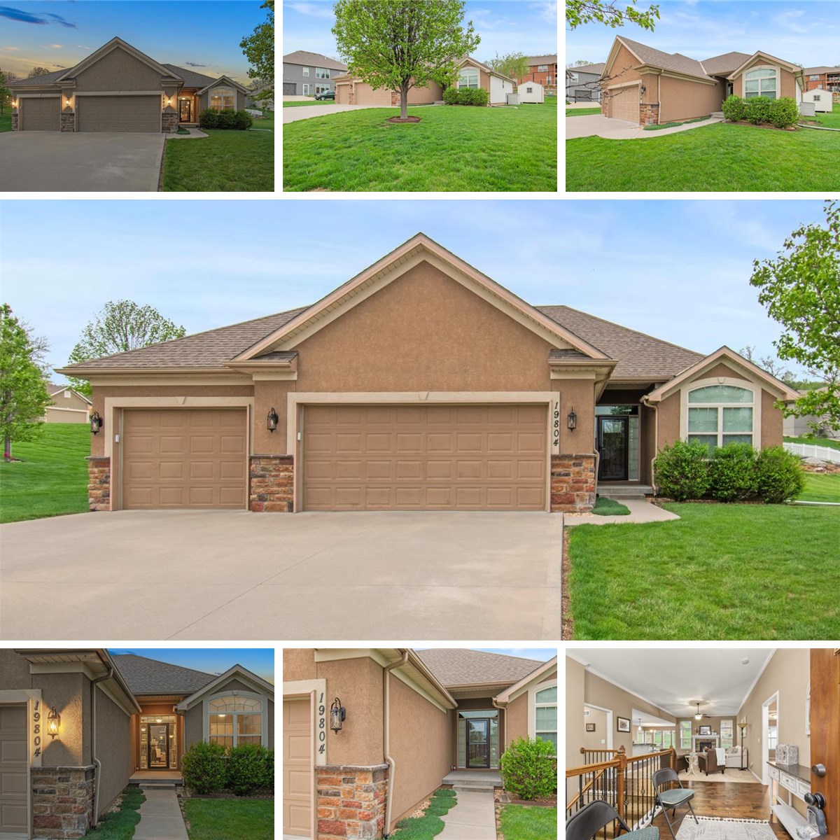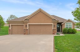 Experience the perfect blend of modern sophistication and suburban comfort in this stunning ranch-style residence. The inviting exterior, featuring a three-car garage and stone accents, opens into a light-filled interior defined by high ceilings and an expansive open-concept layout. The home's centerpiece features a gourmet kitchen that shines with crisp white cabinetry, premium granite countertops, and a sleek stainless steel appliance package, seamlessly transitioning into a cozy dining area and a spacious great room anchored by a contemporary stone gas fireplace. Retreat to the luxurious primary suite, where a tray ceiling adds architectural interest and the ensuite bathroom offers a dual-sink vanity alongside a deep soaking tub for ultimate relaxation.
