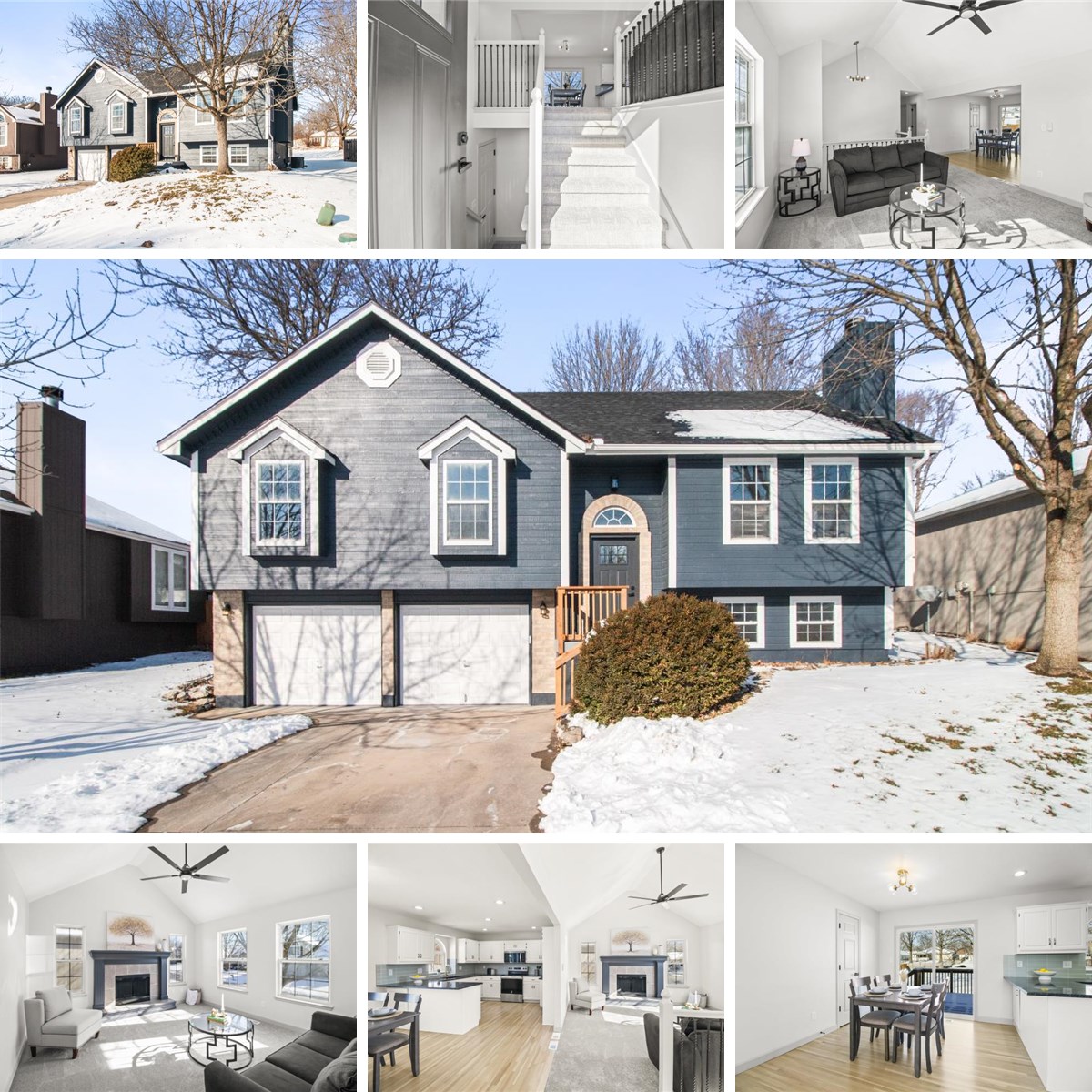 Step into a home that feels like a breath of fresh air, perfectly nestled in a peaceful Blue Springs community. From the moment you pull up to the striking navy blue exterior, you’ll notice a property that has been thoughtfully refreshed to offer a modern, move-in-ready experience. Inside, the open-concept main level is bathed in natural light, showcasing beautiful hardwood floors that flow seamlessly from the dining area into a bright, updated kitchen. Any home chef will appreciate the crisp white cabinetry, sleek dark countertops, and a subway tile backsplash that adds just the right touch of style.