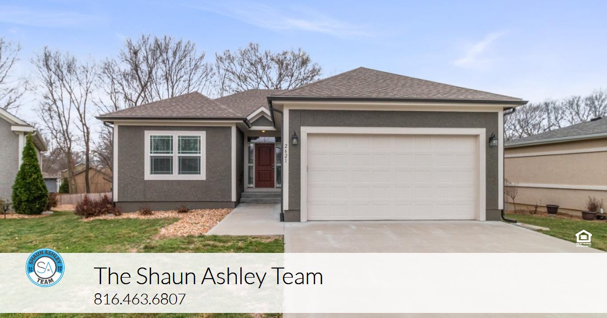 Welcome to your dream retreat in Blue Springs, where modern sophistication meets suburban tranquility. This stunning contemporary ranch immediately captivates with impeccable curb appeal, featuring a sleek exterior and an inviting front door. Step inside to an expansive open-concept great room, where soaring ceilings and a magnificent ten-blade farmhouse fan create an airy, upscale atmosphere. The living area, anchored by a cozy fireplace with a classic white mantel, flows seamlessly into a gourmet kitchen designed for the modern chef. You will love the rich custom cabinetry, gleaming granite countertops, and a sprawling center island—perfect for morning coffee or hosting vibrant gatherings. High-end stainless appliances and a spacious pantry ensure this kitchen is as functional as it is beautiful.